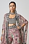 Nupur Kanoi features a mesmerizing Old Rose Jacket Set that captivates with its elegance. The eye-catching jacket is crafted in crepe and georgette with print and hand embroidery. It is paired with a floral blouse and A-line pants. Style this set with statement jewelry and heels for a regal look, ideal for any festive occasion or sangeet ceremony.