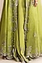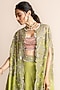 Featuring pista sharara pants in crepe base with mirror, swarovski, metallic sequins, studs and pearls hand embroidery, including a can-can. It is paired with a matching crepe and satin lycra blouse, including an organza cape.