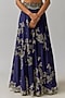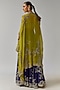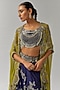 Featuring a pista green dupatta cape in georgette base with mirror cutwork embroidery. It is paired with a navy blue silk lehenga and a crepe blouse. Accentuate it with statement jewellery and heels for weddings.