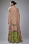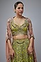 Featuring a pista green kalidar lehenga in silk and crepe base with mirror and cutwork hand embroidery. It is paired with a crepe embroidered blouse and an old rose georgette cape dupatta. Accentuate it with statement jewellery and heels for a wedding, engagement or sangeet ceremony.