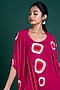 Featuring a rani pink sack dress in crepe base with orange and off-white printed polkas. It is paired with a cowl jacket. Accentuate it with statement earrings and heels for a complete look.