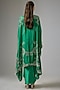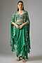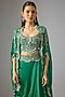 Featuring a sea green cape in georgette base with embroidery. It is paired with a crepe and lycra strappy blouse, including a satin cowl skirt. Accentuate it with statement earrings and heels for festive occasions or wedding ceremonies.