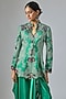Sea Green Silk & Crepe Hand Embroidered Peplum Jacket Set