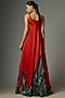 Featuring a teal lehenga in crepe base with print and hand embroidery. It is paired with a rust orange satin singlet top having fringe detail. Accentuate it with statement earrings and heels for cocktail evenings or wedding celebrations.
