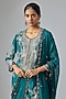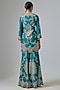 Featuring a teal green kurta in crepe base with sequins, thread, kantha and beads hand embroidery. It is paired with embroidered gharara pants and a georgette dupatta. Accentuate it with silver or swarovski jewellery and heels for a wedding or mehendi ceremony.