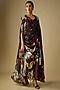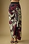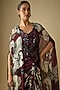 Featuring a wine cape in chiffon base with digital print. It is paired with a crepe and lycra embroidered waistcoat and a satin drawstring skirt. Accentuate it with dangler earrings and heels for a festive occasion, cocktail or sangeet ceremony.