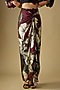Featuring a wine kimono wrap top in crepe base with digital print. It is paired with a side-knot satin skirt. Accentuate it with dangler earrings and heels for a festive occasion, cocktail or sangeet ceremony.