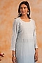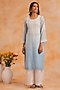 Featuring a blue kurta in mal chanderi base with sequins work, chikankari, pearl and cutdana embroidery. It is paired with chanderi silk pants and a dupatta. Accentuate it with statement earrings and heels for a festive occasion or pooja ceremony.