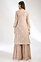 Featuring a brown kurta in mal chanderi, cotton and silk base with mukaish and chikankari embroidery. It is paired with gharara pants and a dupatta. Accentuate it with statement earrings and heels for a festive occasion or engagement ceremony.