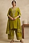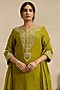Featuring a mehendi green kurta in mal chanderi silk base with chikankari embroidery. It is paired with farshi salwar pants and a dupatta. Accentuate it with heavy jewellery and heels for festive occasions or wedding ceremonies.