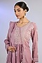 Featuring an onion pink kurta in tissue chanderi silk base with mukaish work and chikankari embroidery. It is paired with cotton silk pants and a dupatta. Accentuate with statement earrings and heels for a festive occasion.