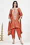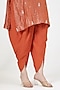 Featuring an orange kurta in chanderi silk base with chikankari, cutdana, pearl, zari and mirror embroidery. It is paired with cotton silk dhoti pants and a chanderi silk dupatta. Accentuate it with dangler earrings and heels for festive occasions or wedding ceremony.