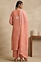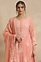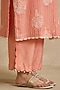 Featuring a peach kurta in mal chanderi silk base with chikankari embroidery. It is paired with pants and a dupatta. Accentuate it with heavy jewellery and heels for festive occasions or wedding ceremonies.