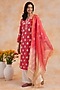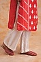 Featuring a red kurta in linen base with chikankari, pearl and cutdana embroidery. It is paired with chanderi silk pants and a dupatta. Accentuate it with statement earrings and heels for a festive occasion or pooja ceremony.