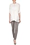 Featuring a white shirt in cotton silk base with gathered yoke and frills.