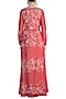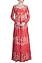 Featuring a red anarkali in chanderi base with beige 3D petal and thread work embroidery. It is paired with matching peshwa jacket.
