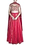 Featuring a red lehenga set in georgette with gota and zardosi chain embroidery.