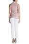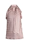 Featuring a taupe colored blouse in chevron georgette base with ruffles and pussy bow.
