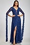 Featuring an ultramarine blue long dress in net and crepe de chine base with cut out sleeves.