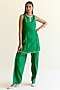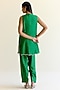 Featuring a green sleeveless short kurta in pure silk base with pearls and handcut scallop details. It is paired with salwar pants. Style it up statement earrings and heels for family gathering to festive occasions.