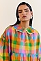 Featuring a multi-colored checkered dress in handwoven pachranga silk organza base with hand cut and zari embroidered scallop border, including a detachable collar. It is paired with a mul cotton slip. Accentuate it with statement earrings and heels for a brunch or casual outing.