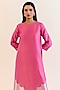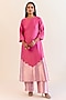 Featuring a pink kurta in chanderi silk and handwoven kimkhwaab tissue base. It is paired with pants. Style it up statement earrings and heels for family gathering to festive occasions.