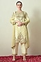 Featuring a butter yellow kurta in raw silk base with zari work and hand embroidery. It is paired with pants and an organza dupatta. Accentuate it with statement jewellery and heels for a festive occasion, cultural event, haldi, wedding or engagement ceremony.