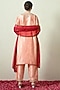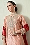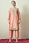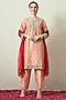 Featuring a peach kurta in raw silk base with zari work and hand embroidery. It is paired with pants and an organza red dupatta. Accentuate it with statement jewellery and heels for a festive occasion, cultural event, wedding or engagement ceremony.