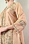 Featuring a rose gold short kurta in chanderi silk base with zari, gotta work and hand embroidery. It is paired with crushed tissue sharara pants and an organza dupatta. Accentuate it with statement jewellery and heels for a festive occasion, engagement or wedding ceremony.