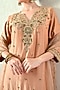 Featuring a rose gold short kurta in chanderi silk base with zari work and hand embroidery. It is paired with sharara pants and an organza dupatta. Accentuate it with statement jewellery and heels for a festive occasion, engagement or wedding ceremony.