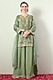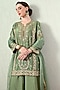 Featuring a sage green short kurta in chanderi silk base with zari, gotta work and hand embroidery. It is paired with crushed tissue sharara pants and an organza dupatta. Accentuate it with statement jewellery and heels for a festive occasion, mehendi or wedding ceremony.
