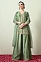 Featuring a sage green short kurta in chanderi silk base with zari work and embroidery. It is paired with sharara pants and an organza dupatta. Accentuate it with statement jewellery and heels for a festive occasion, mehendi or wedding ceremony.