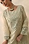 Featuring a vanilla ice kurta in chanderi silk base with mirror hand embroidery. It is paired with crushed chanderi sharara pants and a silk organza dupatta. Accentuate it with jewellery, embellished heels and a potli bag for festive occasions or wedding ceremonies.