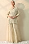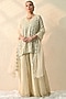 Featuring a vanilla ice kurta in chanderi silk base with mirror hand embroidery. It is paired with crushed chanderi silk sharara pants and a silk organza dupatta. Accentuate it with jewellery, embellished heels and a potli bag for festive occasions or wedding ceremonies.