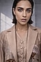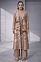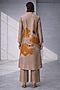Featuring a beige long jacket in silk chanderi base with japanese floral and wave motif embroidery. It is paired with wide-leg trousers and an inner. Style it with statement earrings, sleek hair, and neutral heels, perfect for formal dinners, evening events or special celebrations.