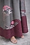 Featuring a graphite grey wrap-style jumpsuit in silk chanderi base with a lapel collar, japanese wave and floral motifs, adorned with deep wine panel details. Style it with statement earrings, sleek hair, and neutral heels, perfect for formal dinners, evening events or special celebrations.