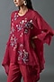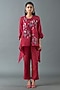 Featuring a maroon tunic in japanese quash base with sequins embroidery. It is paired with pants and a cotton satin inner. Accentuate with statement jewellery and heels for a complete look.