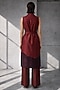 Featuring a maroon sleeveless wrap jacket in silk chanderi base with a lapel collar. It is paired with wide-leg trousers and a belt. Style it with statement earrings, sleek hair, and neutral heels, perfect for formal dinners, evening events or special celebrations.