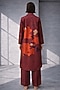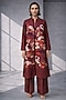 Featuring a maroon long coat in silk chanderi base with japanese floral and wave motif embroidery. It is paired with wide-leg trousers and an inner. Style it with statement earrings, sleek hair, and neutral heels, perfect for formal dinners, evening events or special celebrations.