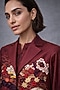 Maroon Silk Chanderi Japanese Floral Embroidered Jacket Set