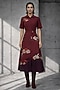 Featuring a maroon midi dress in silk chanderi base with a shirt collar, short sleeves and front placket. It is paired with a belt. Style with pearl jewelry, soft waves, and neutral heels, perfect for brunches, cultural events, or office wear.