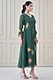 Bottle Green Mul Chanderi Floral Embroidered Dress