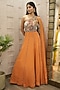 Burnt Orange Silk & Georgette Hand Embroidered Gown