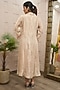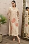 Featuring a champagne dress in tissue organza base with flared sleeves, hand paint and embroidery. Accentuate it with statement jewellery and heels for summer events, garden parties or elegant soirees.