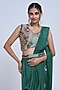 Green Silk & Satin Organza Hand Embroidered Draped Saree Set
