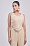 Featuring an ivory sharara in silk and georgette base with embroidery. It is paired with an embellished bustier. Accentuate with statement jewellery and heels for a wedding or a sangeet ceremony.