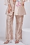 Featuring a light gold jacket in tissue base with hand-painted. It is paired with a bustier and pants. Accentuate it with silver jewellery and heels for a festive occasion or sangeet ceremony.