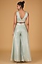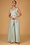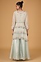 Featuring a mint jacket in satin organza base with zardosi hand embroidery. It is paired with a bustier and sharara pants. Accentuate it with statement jewellery and heels for a wedding, mehendi or engagement ceremony.