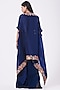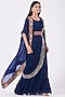 Featuring a navy blue gown saree in georgette base. It is paired with a matching belt, a drape having zardosi work, and an organza embroidered cape.