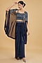 Navy Blue Satin Organza Cutdana Hand Embroidered Cape Set